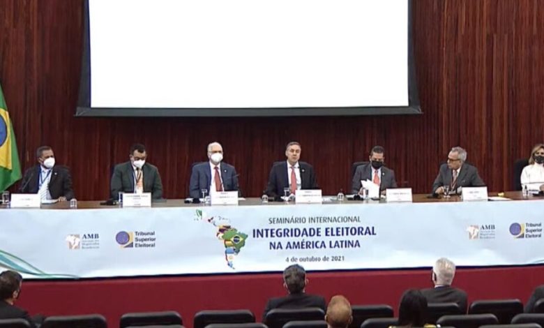 Para fortalecer o combate à ameaça à democracia, evidenciada pelas campanhas de desinformação e ataques a instituições federais, comuns ao Brasil e a muitos países, o Tribunal Superior Eleitoral (TSE) promoveu, nesta segunda-feira (4), o “Seminário Internacional: Integridade Eleitoral na América Latina – Experiências Recentes e Perspectivas”. O encontro foi aberto pelo ministro-presidente do TSE, Luís Roberto Barroso, que conduz o evento em parceria com a magistrada Renata Gil, presidente da Associação dos Magistrados Brasileiros (AMB).